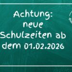 - Achtung: neue Schulzeiten ab dem 01.02.2026Offener Anfang: 7.50–8.00 UhrDer offene Anfang dient dem ruhigen und entspannten Ankommen in der Schule. Die Aufsicht auf dem Schulhof… Achtung: neue Schulzeiten ab dem 01.02.2026 weiterlesen